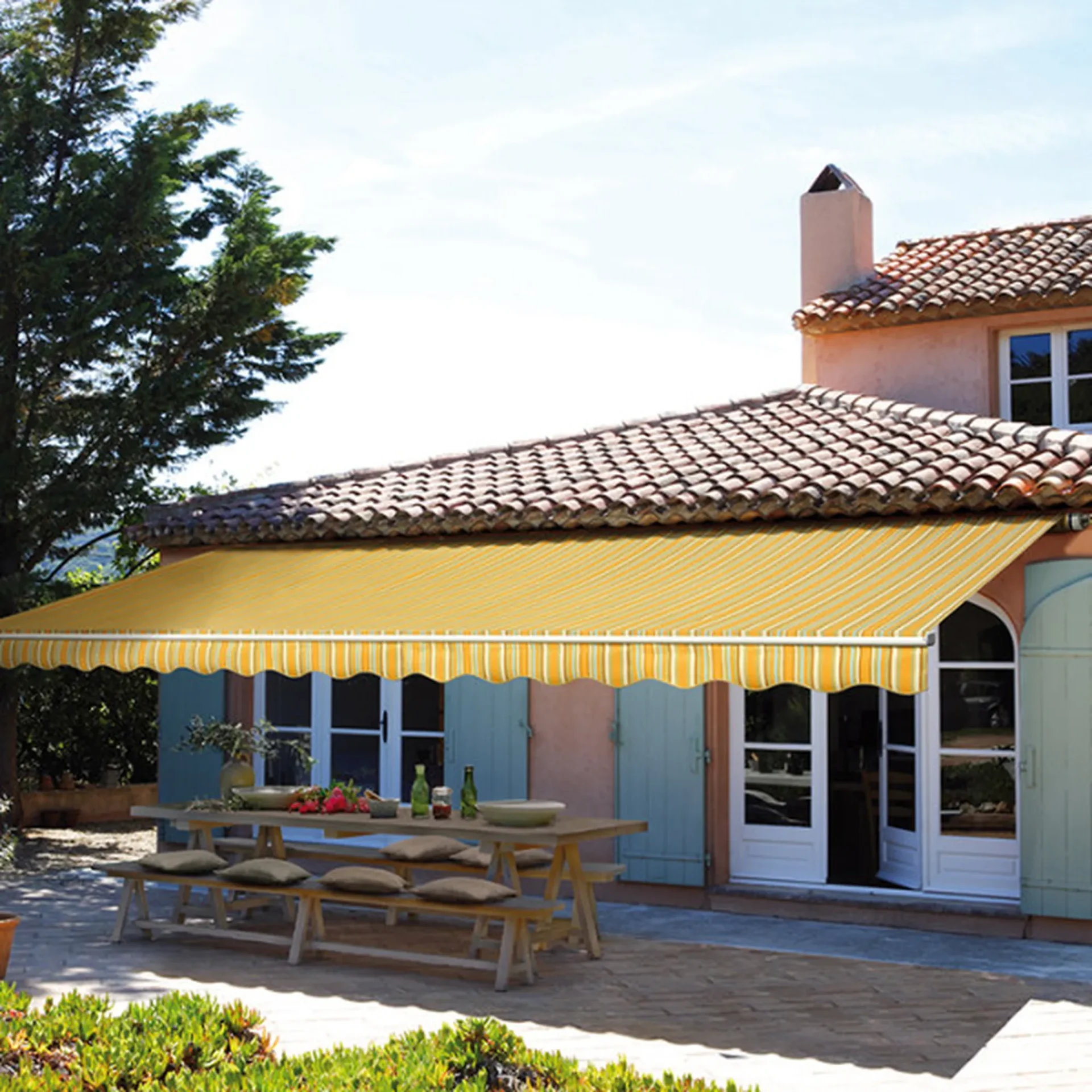 Store terrasse, parfait pour créer de l’ombre et protéger du soleil tout en profitant de l’extérieur.